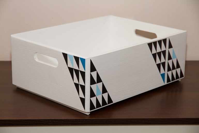 Ну и последний ящик, заметьте не треугольники)) Сделала его для розыгрыша вчесть дня рождения. Получился яркий и понастоящему праздничный!