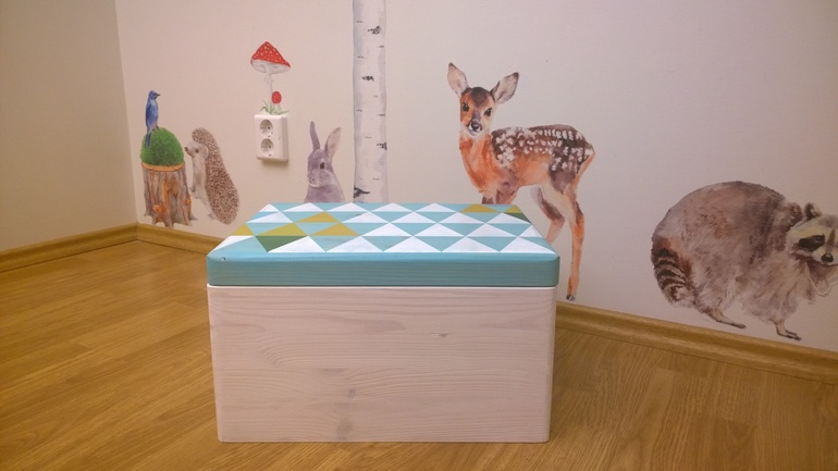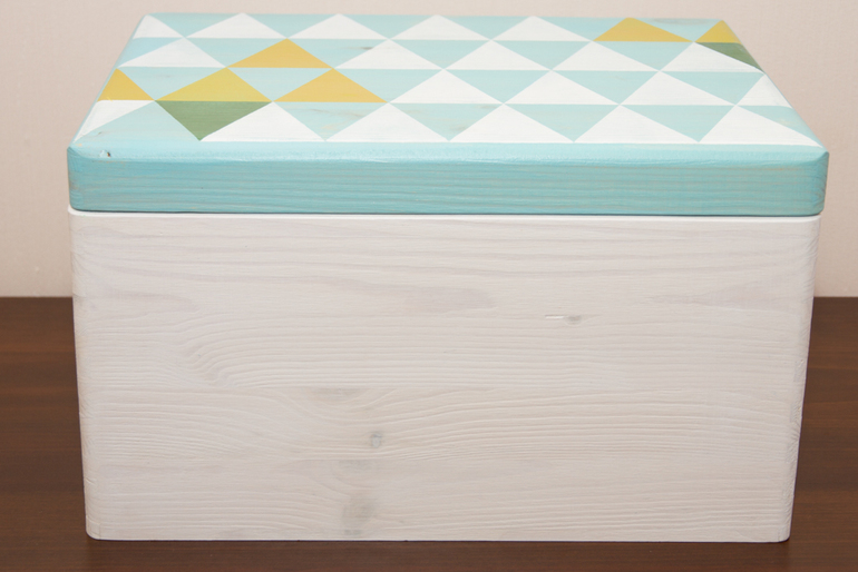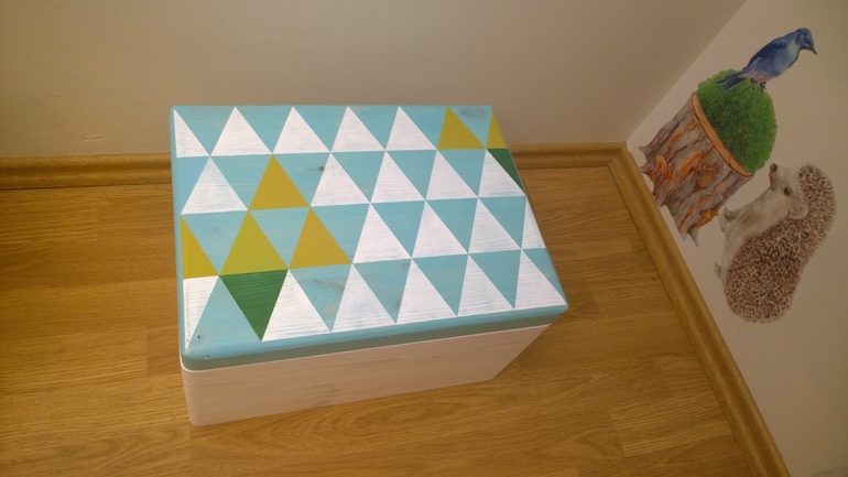А еще я таки смогла сделать ящик с крышкой и попробовала его покрасить, чтоб была видна текстура сосны.
