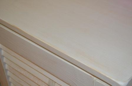 Затем все основательно отшлифовали, все углы скруглили. Покрасили имеющейся дома белой фасадной краской на водной основе. Еще раз отшлифовали и покрыли матовым прозрачным лаком на водной основе. Ну и затем прикрутили ножки, ручки. И расставили коробки.