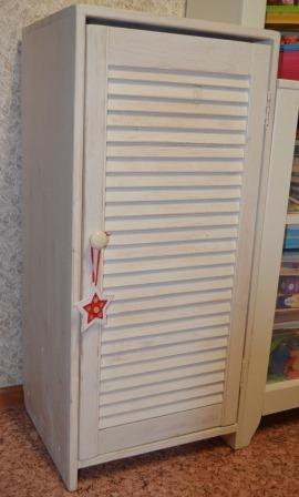 В отделе с мебельными щитами наткнулись на жалюзийные дверцы и решили заодно сделать небольшой шкафчик под домашнюю одежду.