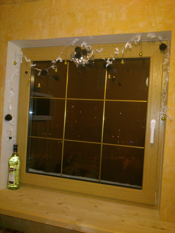 Ремонт еще не доделан, штор нет, а праздник уже буквально на пороге.Украсила кухонное окно шариками из Икеи, года 3-4 назад покупали, сама нитка из нынешней коллекции) Аскетичненько так. Завтра в комнате украшать буду-там уж гирлянда с огнями будет-доченька порадуется) С НАСТУПАЮЩИМ ВАС!!!