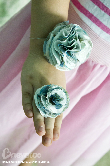 Неимоверно просто и увлекательно делать такие цветы. Мне так понравилось! Я вспомнила, как мы в детстве крутили колечки из цветной проволоки. А Плюше понравился результат, она сразу же потребовала одеть платье.