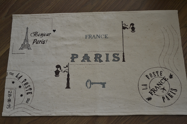 А это изделия, которые я сделала на заказ: декоративная салфетка с темой Париж, специально изготовлена для хозяйки московской квартиры.