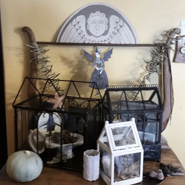 Ага и жутковато и мрачновато местами. Но это настоящие арт объекты, произведения искусства, поэтому не рассчитаны на массовое признание. Лично меня эти работы очень впечатлили, они оригинальны и техника исполнения их отнюдь не так проста, как может показаться на первый взгляд.Чувствуется рука профи. Но.... себе в дом я такие штуки бы не приобрела, наверное потому, что Хеллоуин не моя тема, в принципе.