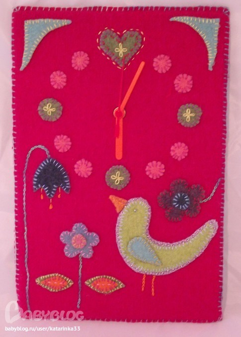 Очень у вас стильные часики. И вся подборка интересная. Мне очень понравились вязанные, под ретро радио..и от будильников я млею и таю....тем более от таких беленьких с бирюзовыми стрелками и цветочками...У нас есть такой, стоит в туалете. И часы с кисями на кухне. А вокруг часов дочкины художества:)