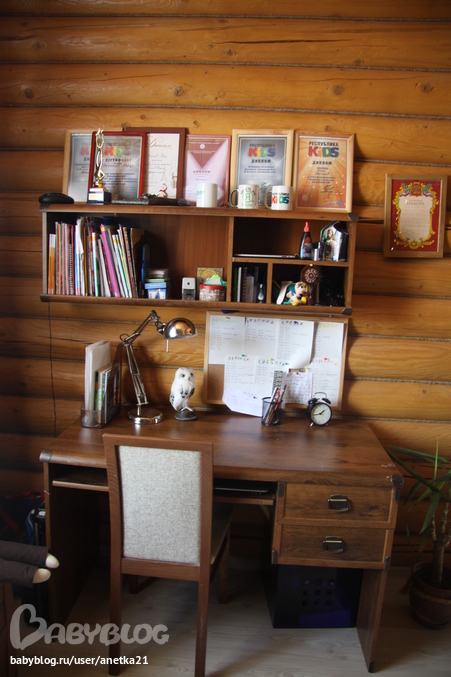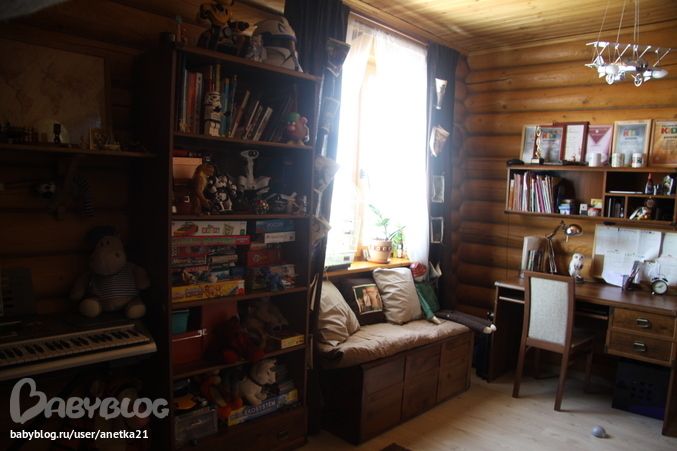 Детская у вас не побоюсь этого слова - стильная, добротная, роскошная даже. Везде дерево, сундук...Я обожаю такие интерьеры. Вы живете в срубе? Про расписание, мое фото что-то не найду, но я делала для дочки, когда мы занимались, так, как на этом (с бб фото) в рамке на прищепках. здесь девочкин вариант, но можно обыграть и для мальчика