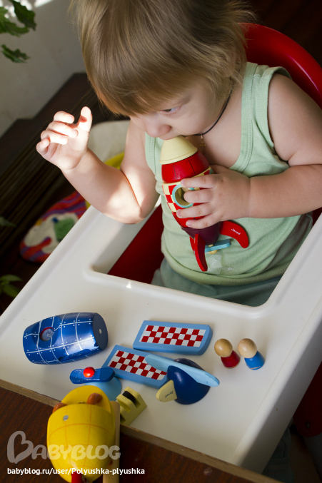 Игрушки из дереваУ нас есть такое трио - самолет, вертолет, ракета. Такой набор получился интересным, потому, что детали можно комбинировать друг с другом по-разному. Магниты крепкие, но податливые. Федюня без труда их разъединяет-соединяет. Ему игрушка понравилась. Плюше тоже. Качество, могло бы быть и получше, за такую цену. Внешне все отлично. Но, в процессе пользования, отваливались части, сдиралась краска. Как идея - игрушка замечательная. Для первого конструктора малыша - самое то.