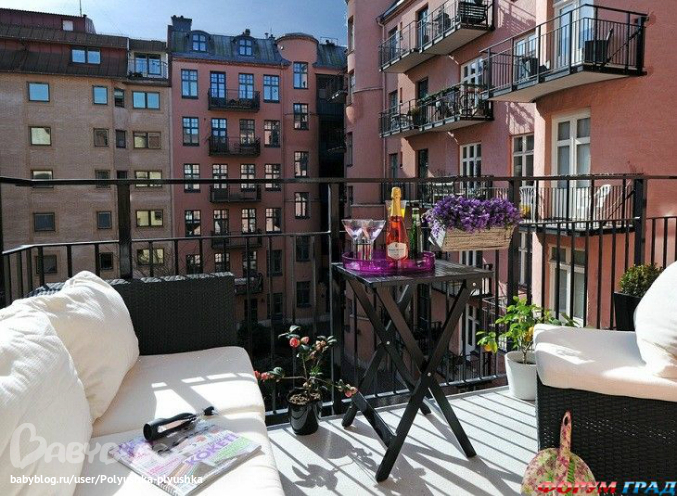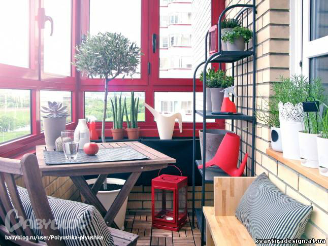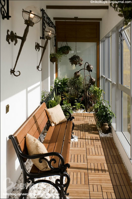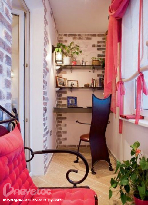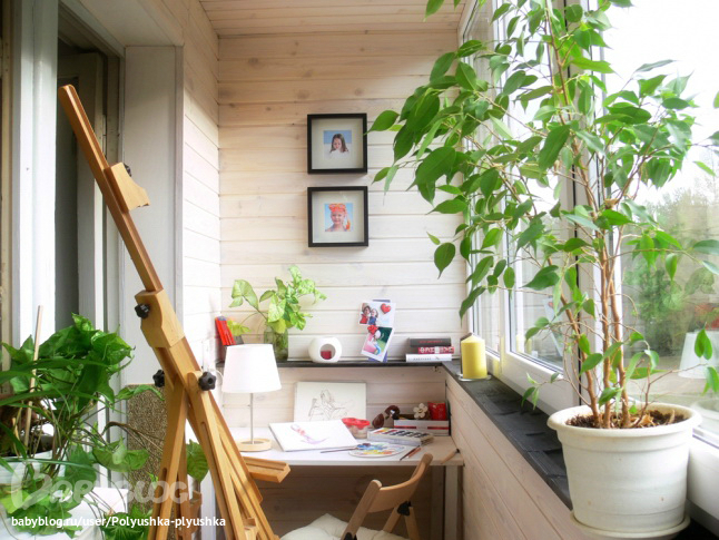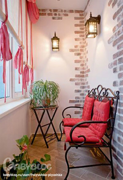 ах, красота! у нас балкон был страшный и я только мечтала, но не украсишь ничем, потому как пол бетонный, стена под балконными окнами красная кирпичная, торчат арматурины и всякое украшение только бы подчеркивало эту "черновую отделку". а прошлым летом приезжал свекр в гости и обшил балкон. я, конечно, хотела вагонкой и покрасить в белый или бежевый, но реалии таковы, что хватило исключительно на пластиковые панели. выбрали бежевые, свекр настелил пол и утпелил, сверху линолеум, обшил балкон панелями, стена с окном осталась кирпичной, но она бежевая отродясь там, плинтус и подоконник сделали цвета венге. получилось очень даже! бюджетно и аккуратно. и работы на один день. теперь мечтаю купить туда столик и стулья, чтобы ребенок мог летом там рисовать, а взрослые чаи гонять. и ковер чтоли, или ковролина прикупить, чтобы играть на полу. теперь можно и цветы на окошко (лишь бы миша их уронил) и шторы. в общем теперь у меня простор для творчества. только беда одна есть: зимой балкон весь промерзает, и все что там может стоять летом, на зиму придется перетаскивать в квартиру, иначе оно там погибнет от влаги и мороза и перепадов. а квартира однокомнатная, самим бы тут втроем разойтись)