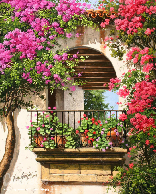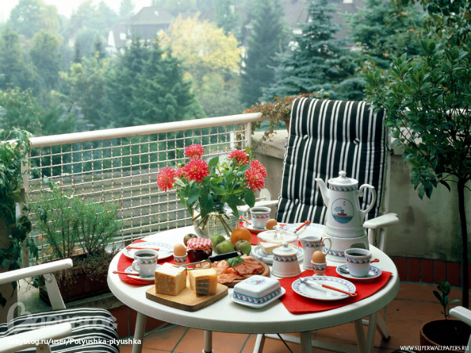 Разные разностиТак уже хочется тепла. Чтобы выйти на цветущий балкончик, посидеть, попить чайку, полюбоваться видом из открытого окна....А в реале - полная ж...а. Собачий холод, окна выходят на тубдиспансер, на балконе свалка. Но, кто ж помешает помечтать...