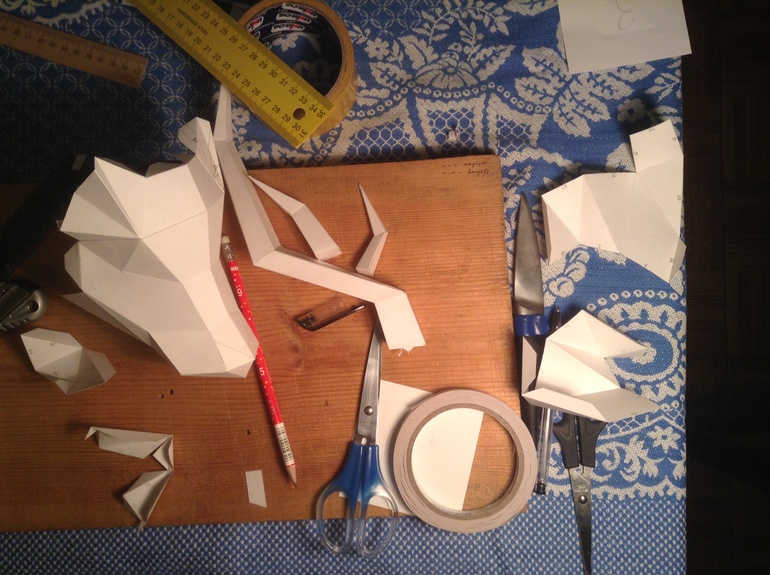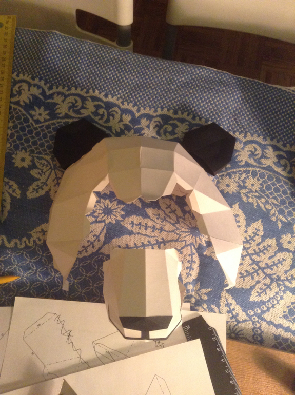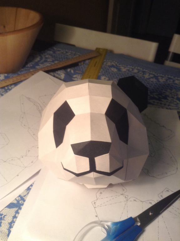 Сделано рукамиГде-то увидел такие работы и решил попробовать сам. В общем-то пока на голове оленя учился - как-то долго шла сборка. С пандой все было чуть быстрее, хотя панда мне показалась сложнее :))) Голова оленя собиралась белой, потом я ее красил черной матовой краской :) Панда состоит из бумаги двух цветов - черной и белой, без покраски