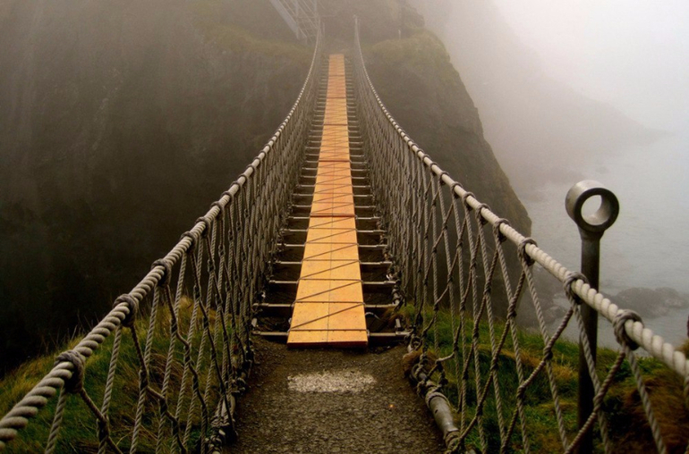 Канатный мост Carrick-a-Rede, неподалеку от города Баллинтой в графстве Антрим. Северная Ирландия