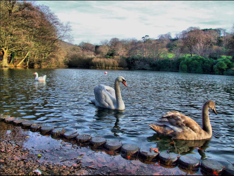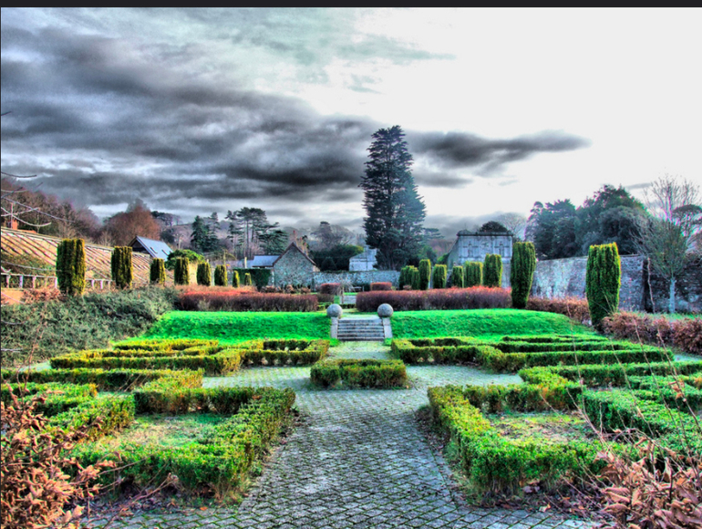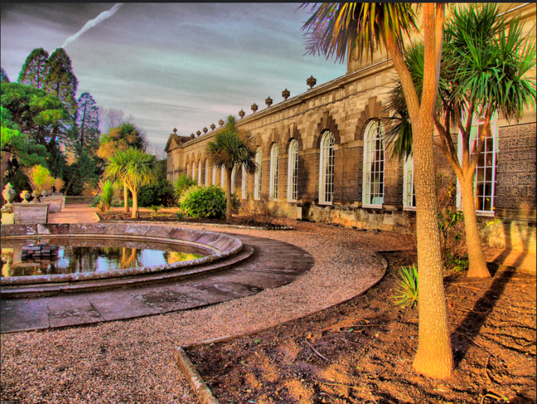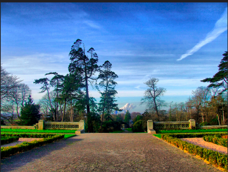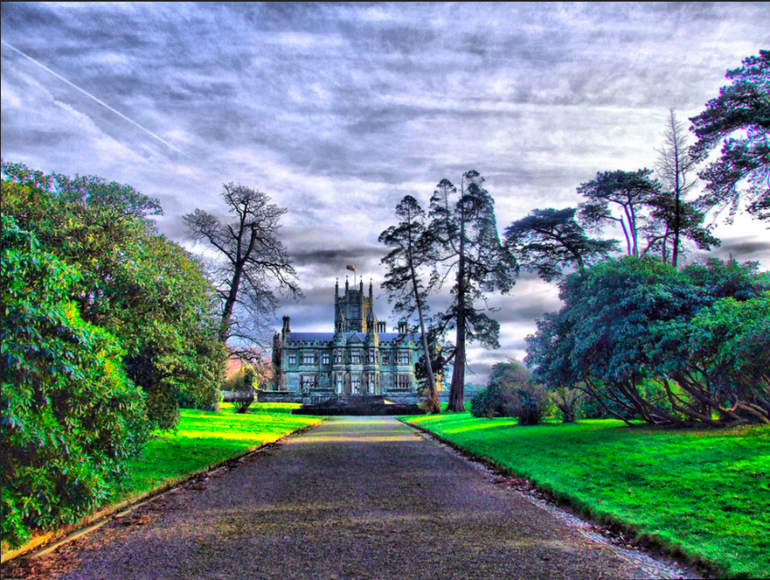 Вокруг очень большой и красивый парк на 500 акров - пруды, оранжереи, ферма, выход к побережью, туристический поезд показывает окрестности.