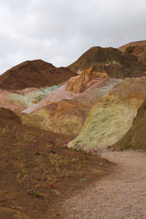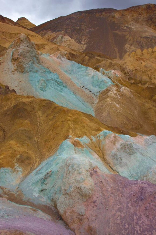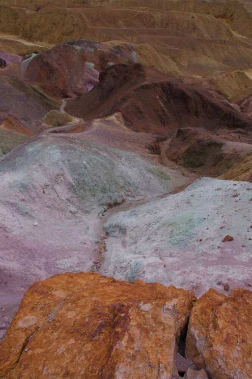 Архитектура, экстерьер, интересные места, природаОдно из самых популярных и красочных мест знаменитой Долины смерти - так называемая Палитра художника (Artist polette). На этой «палитре» красуются плавные переходы пастельных тонов: розовый, охряной, голубой, фиолетовый. Окрас пейзажа образовался благодаря выветриванию и окислению горных пород оксидами и солями железа, марганца и слюды. Бытует шутка, что индейцы подкрашивают склоны чтобы привлечь побольше туристов.)