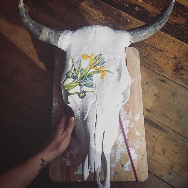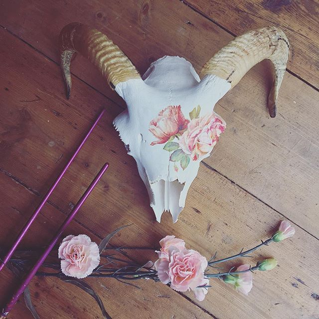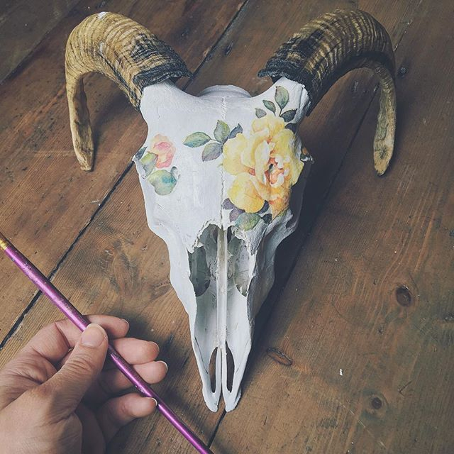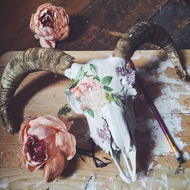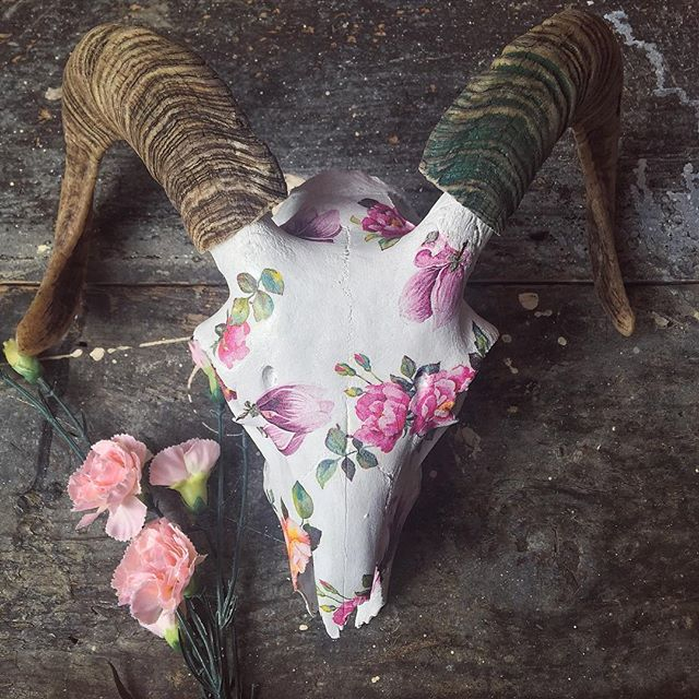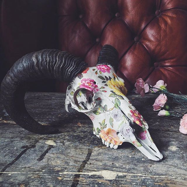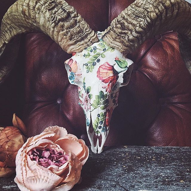 Скандинавский стильНи один настоящий скандинавский интерьер не обойдется без такой вот "мертвой головы". В скандинавской мифологии - козел впряжен в колесницу Тора. Череп козла оберегает дом от зла. Посмотрите, какие расписные чудеса творит @arrow_and_wild