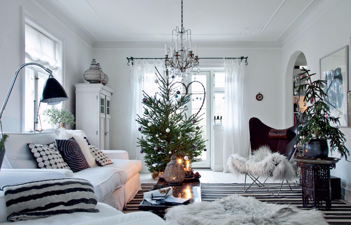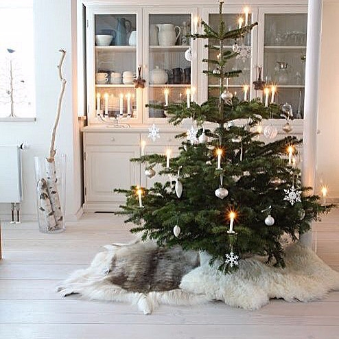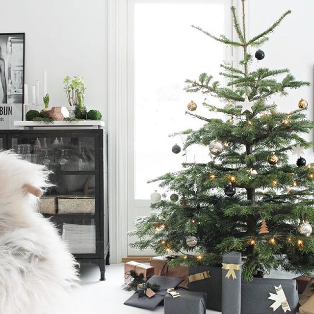 В первую очередь, лаконичные, с минимумом декора, или декором в одном цвете - золотом, сером, белом? красном...Елочка сама выступает украшением, и особо не нуждается в дополнительном обрамлении. Нам, славянам, не понятна такая сдержанность. У нас принято наряжать елочку в разноцветные игрушки и огоньки.