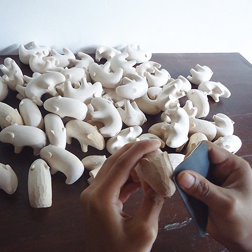 А вот Олаф, Хиппо, Рин и Гроссо - вместе они семья Мастодонтов. Они сделаны из натурального дерева и 22 движущихся деталей, которые крепятся на магнитах. Вы можете использовать несколько комбинаций, чтобы превращать слона в носорога, или в медведя, или можете купить каждую фигурку по отдельности.