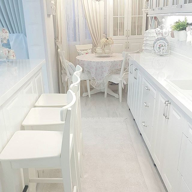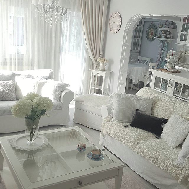 Прованс/Кантри/Шебби-шикНу, и чтобы два раза не вставать, вот еще один дом. Такой ненавязчивый шебби-шик. Просто много белого и немного рюшей. Мне по душе:)