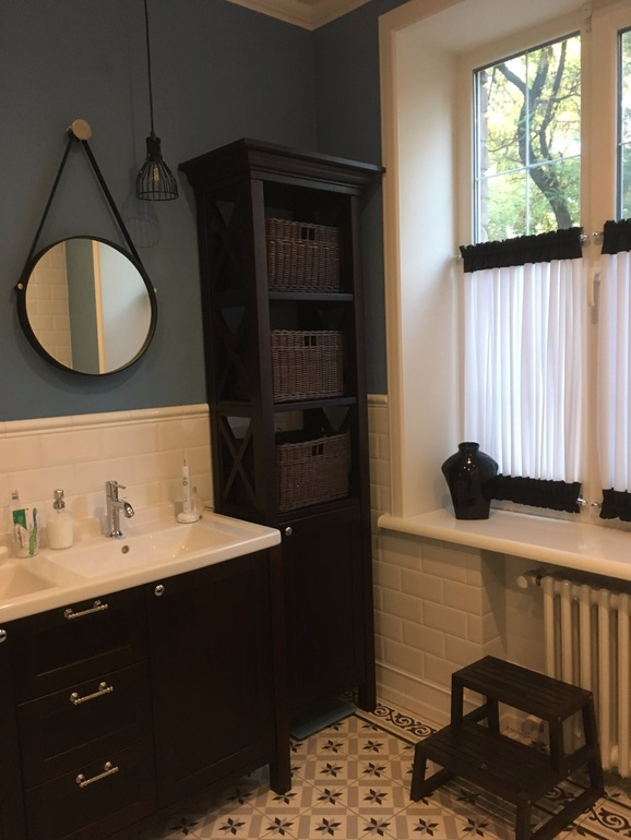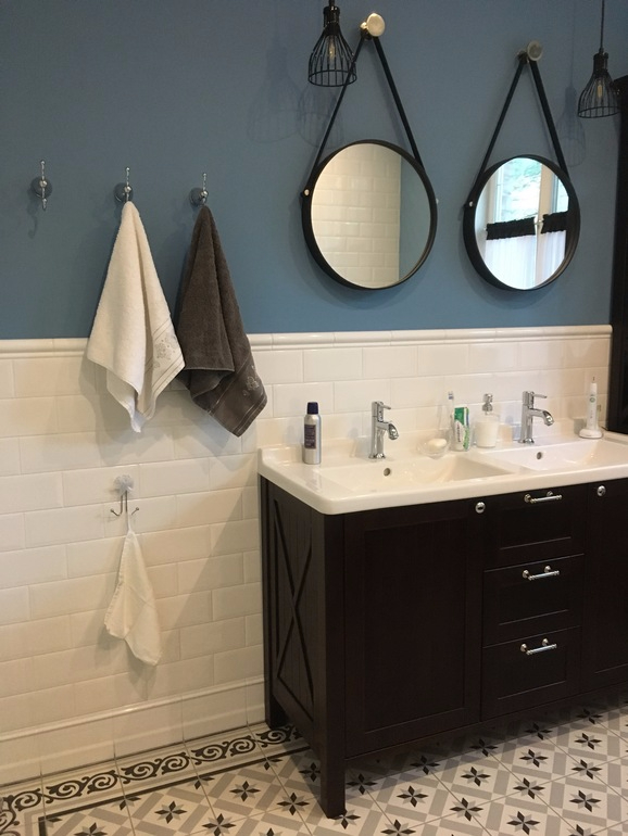 Очень крутая ванная комната! Действительно-комната )) Встречала ее на просторах интернета. Настолько все гармонично и идеально подобрано! Мне тоже нравится сочетание-плитка+покраска, но у себя так и не рискнули воплотить эту идею, а жаль (( Уже хожу, нашептываю мужу, что через пару-тройку лет кое что в ванной нужно будет переделать ))