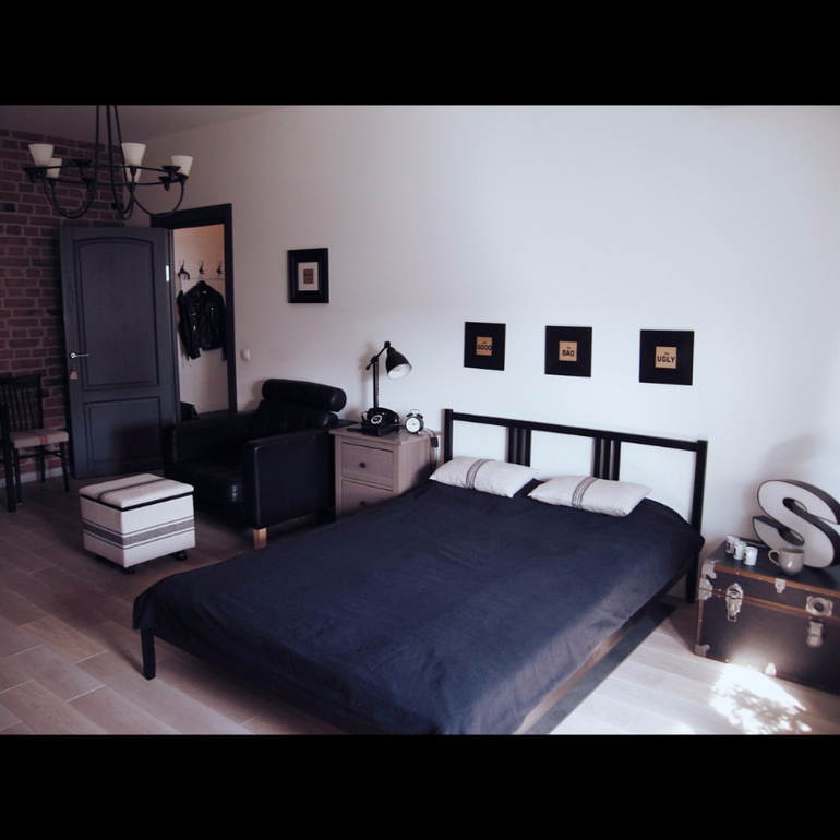 Получилось так сдержанно и стильно, что очень смахивает на мужской интерьер. Но, нет! Мне лично, очень нравится. У хозяйки есть чувство стиля, и со вкусом все в порядке:)