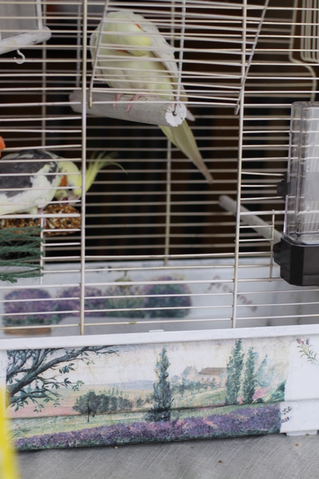 Сделано рукамиРешила попугаев переставить в спальню из детской. Ну естественно долго мучалась. так как хотелось клетку в стиле прованс сделать. что то вышло, что то нет.) ну в общем мне нравится