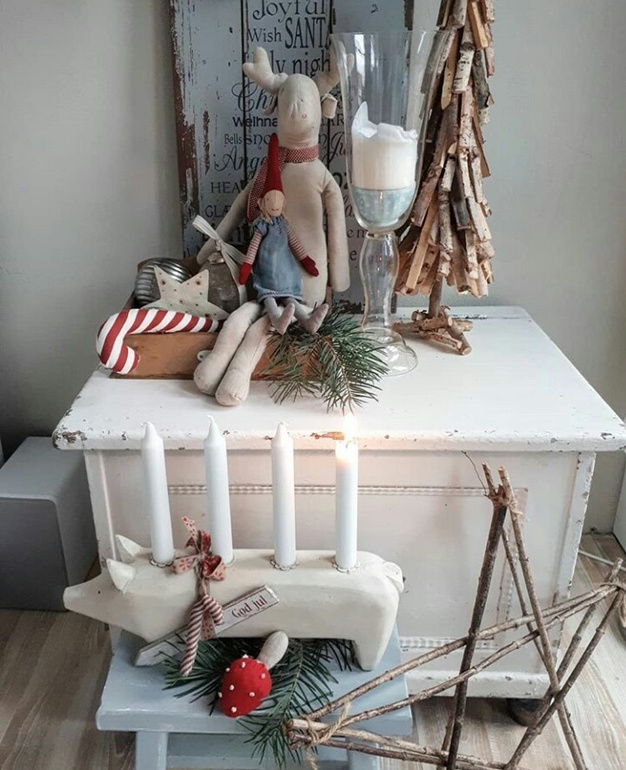 ПраздничноеСамое любимое моему сердцу рождественско-новогоднее - это вот так. По-деревенски, с обшарпанным деревом. эмалью, ковриками и игрушками Maileg и всеми этими безделушками.