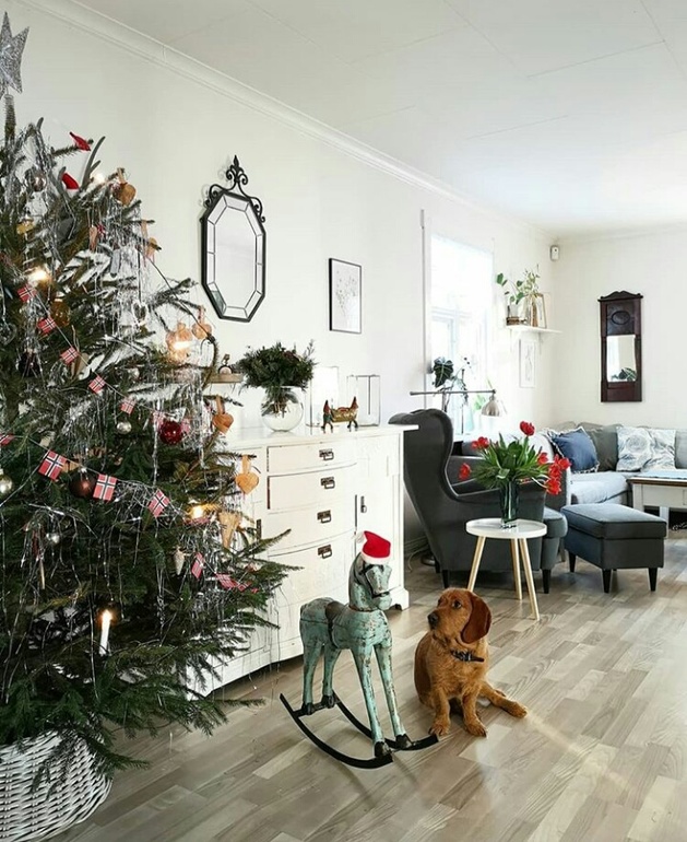 Вот это уютное гнездышко! Печурка, котейко, собакевич... А какая елочка! 🌲