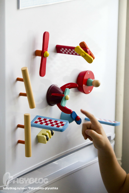 У нас есть магнитные конструкторы "Ракета", "Самолет", "Вертолет" (подробнее тут Магнитные конструкторы Janod). Я считаю это удачным приобретением, именно в таком трио. Такой набор можно комбинировать и получается интересно.
