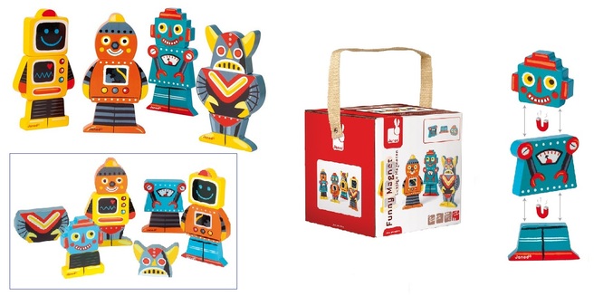 Магнитные пазл-фигурки "Забавные роботы", "Забавные куклы", "Дикие животные". Такие пазлы очень хороши для развития пространственного мышления. Мне нравятся больше всего роботы. Магнитные конструкторы мы любим.