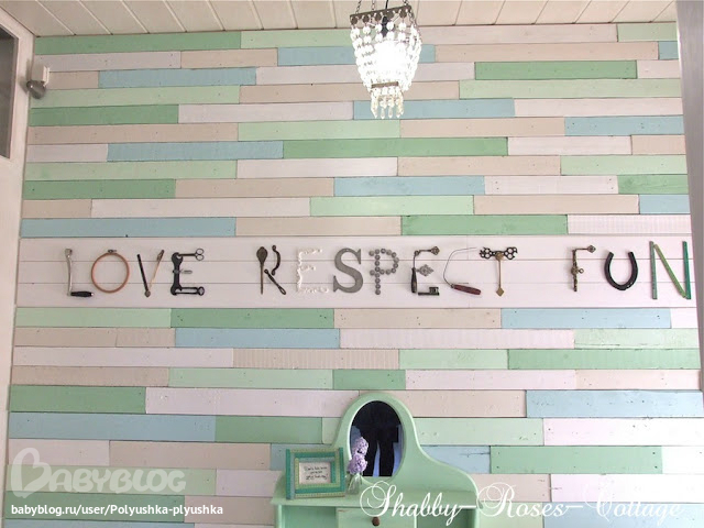 Самое крутое-стена из разноцветных досок и стенка с птичками.