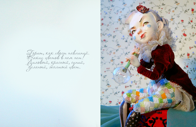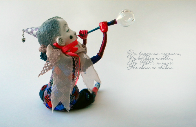 8. Параллельно с пошивом костюма можно заняться цветом. Чтобы не испачкать ткани, я заворачиваю куколку в пленку.