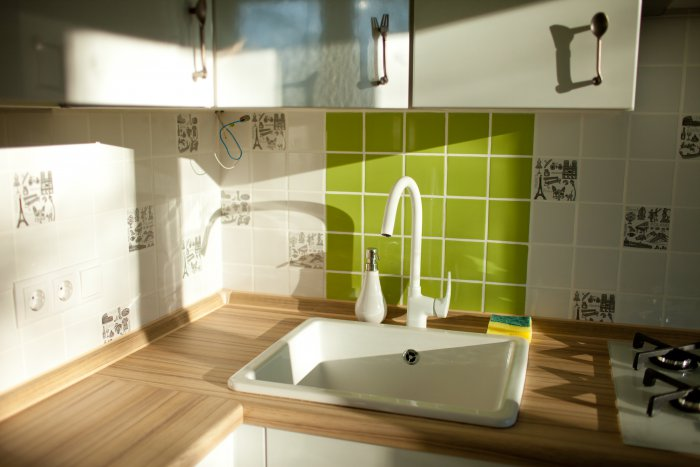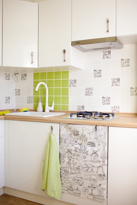 крутая кухня! я хотела сделать подобную белый+лайм, но испугалась, что надоест...а зря...может быть теперь лет через 10....