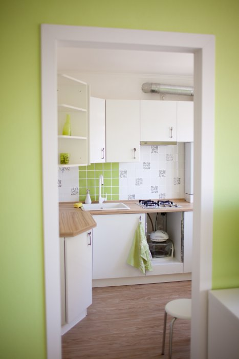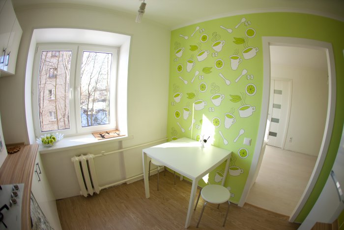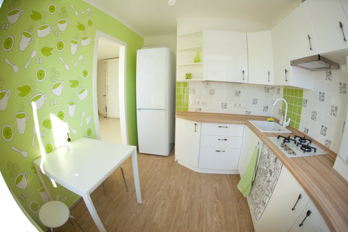 а, мне кажется вполне. одна стена и на фартуке небольшие акценты. на мой взгляд все гармонично. я бы еще белые стулья взяла. кстати, хозяйка еще не решила такие зеленые стулья брать или белые.