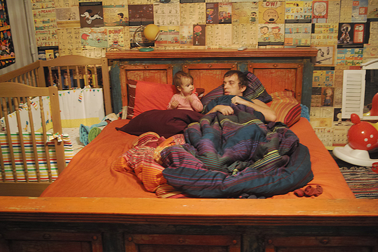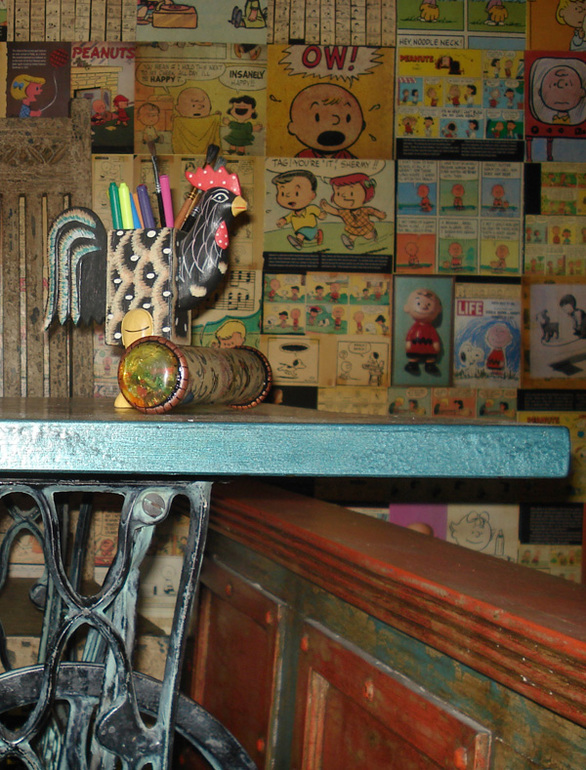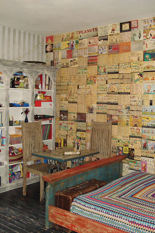 А, от этого фото, я в полном восторге. Эти нереальные обои - страницы книжки комиксов, выдранные из экземпляра на картинке выше...и такая милая беседа двух самых важных людей на земле:)