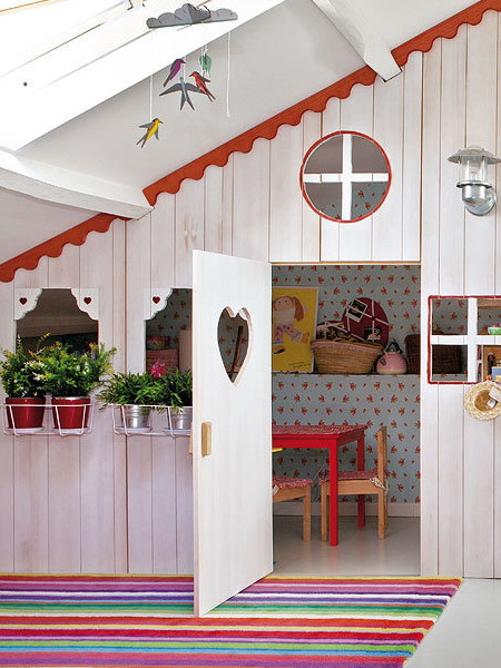 "Мой маленький мир" - идеи дизайна детскойСобственный игровой домик - мечта каждого ребенка. Талантливый испанский дизайнер Марта Корсини тоже размышляла на эту тему. А затем придумала для своих маленьких дочерей целую комнату с авторской импровизацией на тему сказочного домика. И все это - в мансарде площадью 24 кв.м, где "неудобные" скосы крыши превратились в идеальное пространство для творчества.