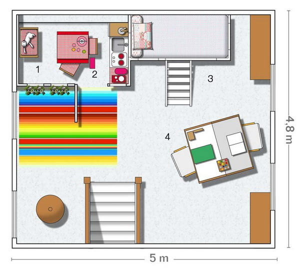 В итоге получилась целая коллекция детской мебели в виде домика для сна, учебы и игр.Перед вами дизайн домика во всех деталях.