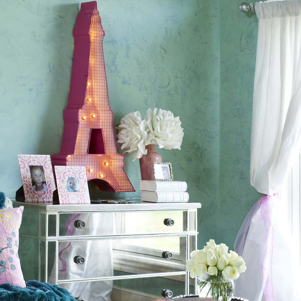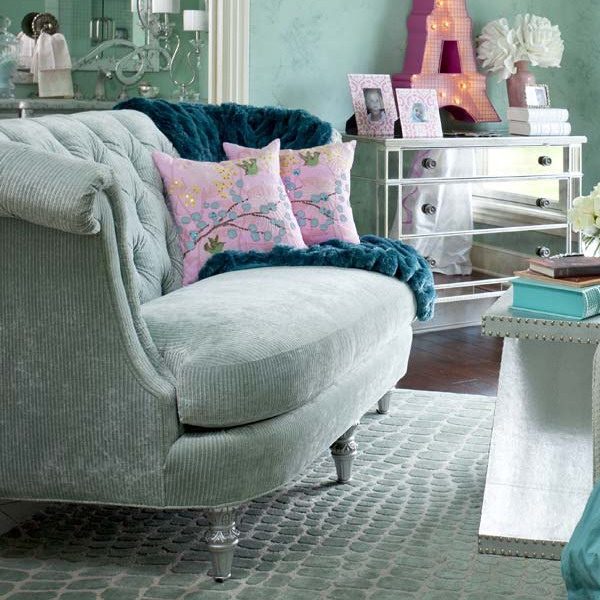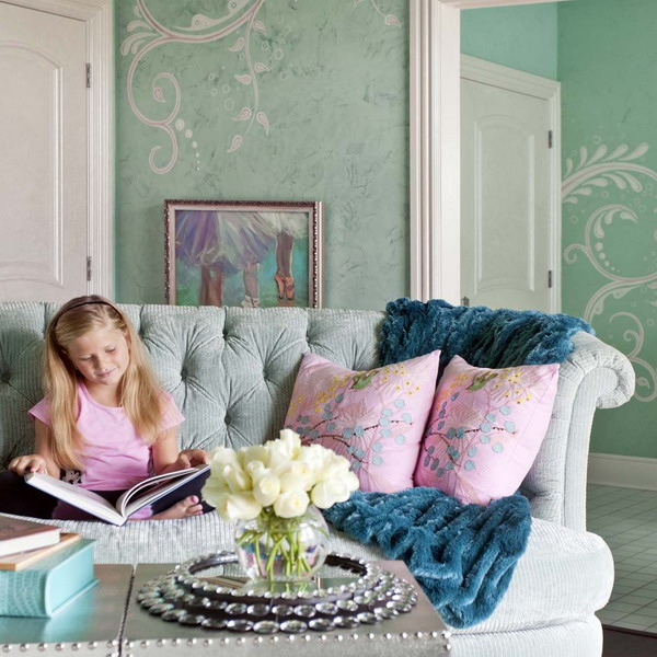 Мебели и декор подобраны так, чтобы они нравились маленькой хозяйке даже тогда, когда ей исполнится 15. В этом возрасте достаточно будет лишь заменить некоторые аксессуары. Но есть и элементы, которые будут актуальны всегда: мерцающая венецианская штукатурка на стенах, зеркальные комод, изящные линии кровати и диванчика-честерфильд.