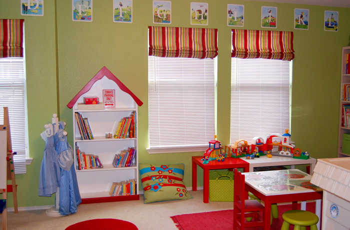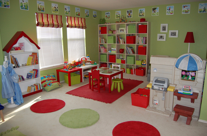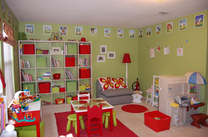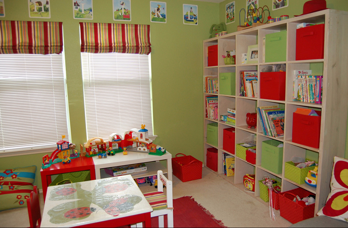 Это яркая игровая комната не только способна в один миг поднять настроение. Она является очень функциональной и удобной для хранения множества детских игрушек.