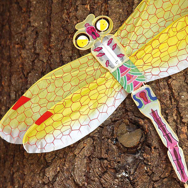 - дополнительное очарование появится благодаря недорогим имитациям фауны, которые несложно приобрести в магазинах или сделать своими руками (бабочки, стрекозы, жучки, птички, скворечник), их можно разместить на стволе дерева, фасаде домика или на ограждении террасы.