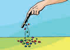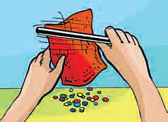 2. Энергично натрите пластиковую палочку шерстяной тряпочкой или шалью. Теперь поднесите палочку к конфетти. Как по волшебству, конфетти начнут подпрыгивать и прилипать к палочке.