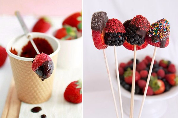 И, конечно, чтобы детвора была в восторге, можно окунуть большую клубнику в белый или черный шоколад, и придумать забавные фигурки из сладких ягод.