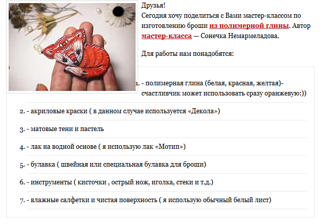 источник: http://1001podelka.ru/brosh-lisyonok-iz-polimernoy-glinyi-master-klass.html