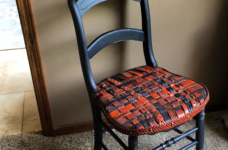 Из старых кожаных ремней получится отличное сиденье для стула.