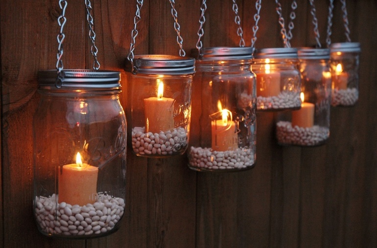 Очаровательные уличные фонари из обычных стеклянных банок.