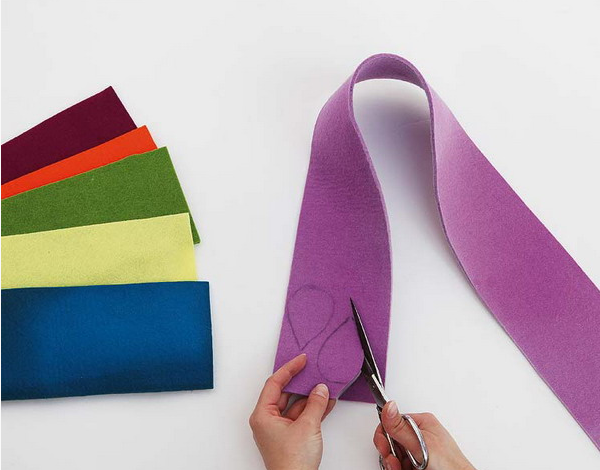 Вам потребуется: белый и цветной фетр, леска, плотная бумага для основы, скоба или петля для подвеса на стену, ножницы, карандаш, клей, подходящий для ткани, шило или штопор для бутылок.