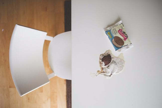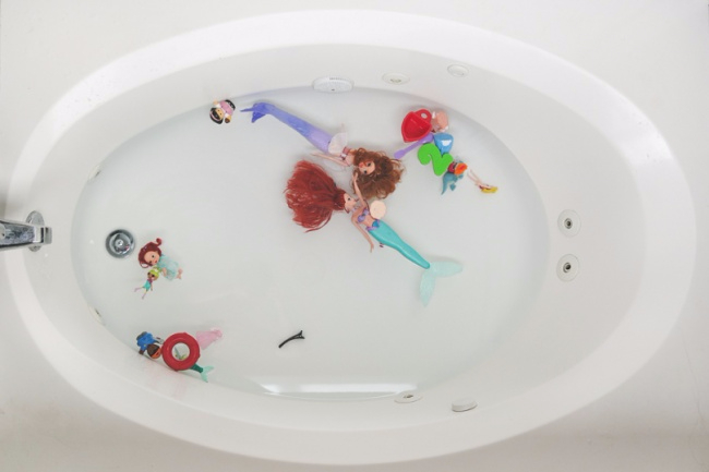 И хотя в нем вы не увидите ни одной фотографии ребенка, присутствие их чувствуется незримо. Игрушки, найденные в неожиданных местах, краски, кусочки печений, кожура от банана - это и многое другое, что приходится собирать мамам по всему дому, предстает здесь милыми следами, которые оставляют дети в этом мире.