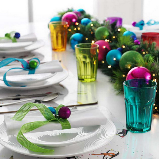 "Little party" - идеи праздниковЕсли вы ломаете голову, чем бы украсить места гостей во время зимнего застолья - выбирайте шарики, не ошибетесь. Шарик может лежать как на самой тарелке, так и на салфетке, в гордом одиночестве или в композиции с чем-нибудь новогодним (еловая веточка, снежинка).