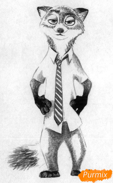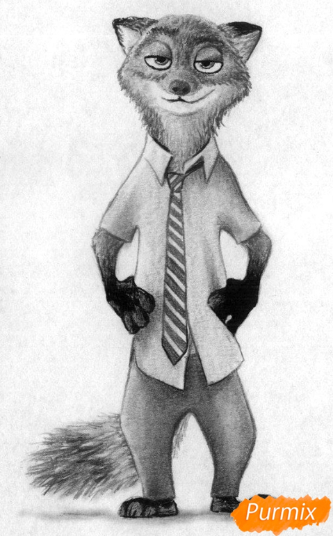 В этом пошаговом фото уроке для начинающих, вы узнаете как нарисовать Ника Уайлда в полный рост из мультфильма Зверополис простыми карандашами и чёрной ручкой поэтапно.
