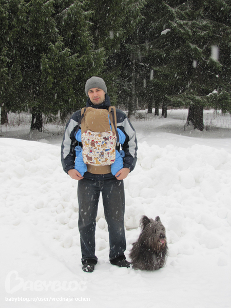Слинг и папаПапа третий день слингуется на прогулках с собакой )) И по-моему, он доволен ))