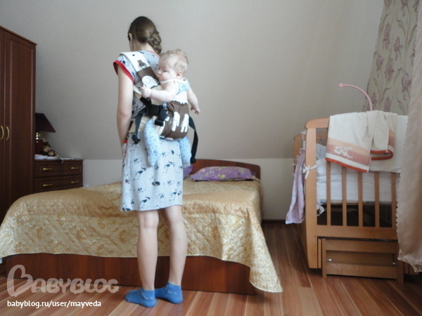 Позиция "на спине" казалась мне неосуществимой в одиночку. А нужно было именно в одиночку его посадить. Айлавмамская инструкция оказалась бесполезной. Стоя такой финт не проделаешь. А сегодня я всё-таки поняла, как посадить его за спину. При помощи кровати, лёжа))) Зато безопасно.
