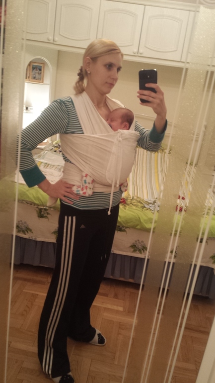 С появление сыночка решила опять попробовать слинг: на фото Самиру еще нет и месяца, он прекрасно проводит время в трикотажном слинге, спит там часами, но все-таки мне больше по душе эрго-рюкзачки. Так что ждем , когда нам исполнится 4 мес.:))